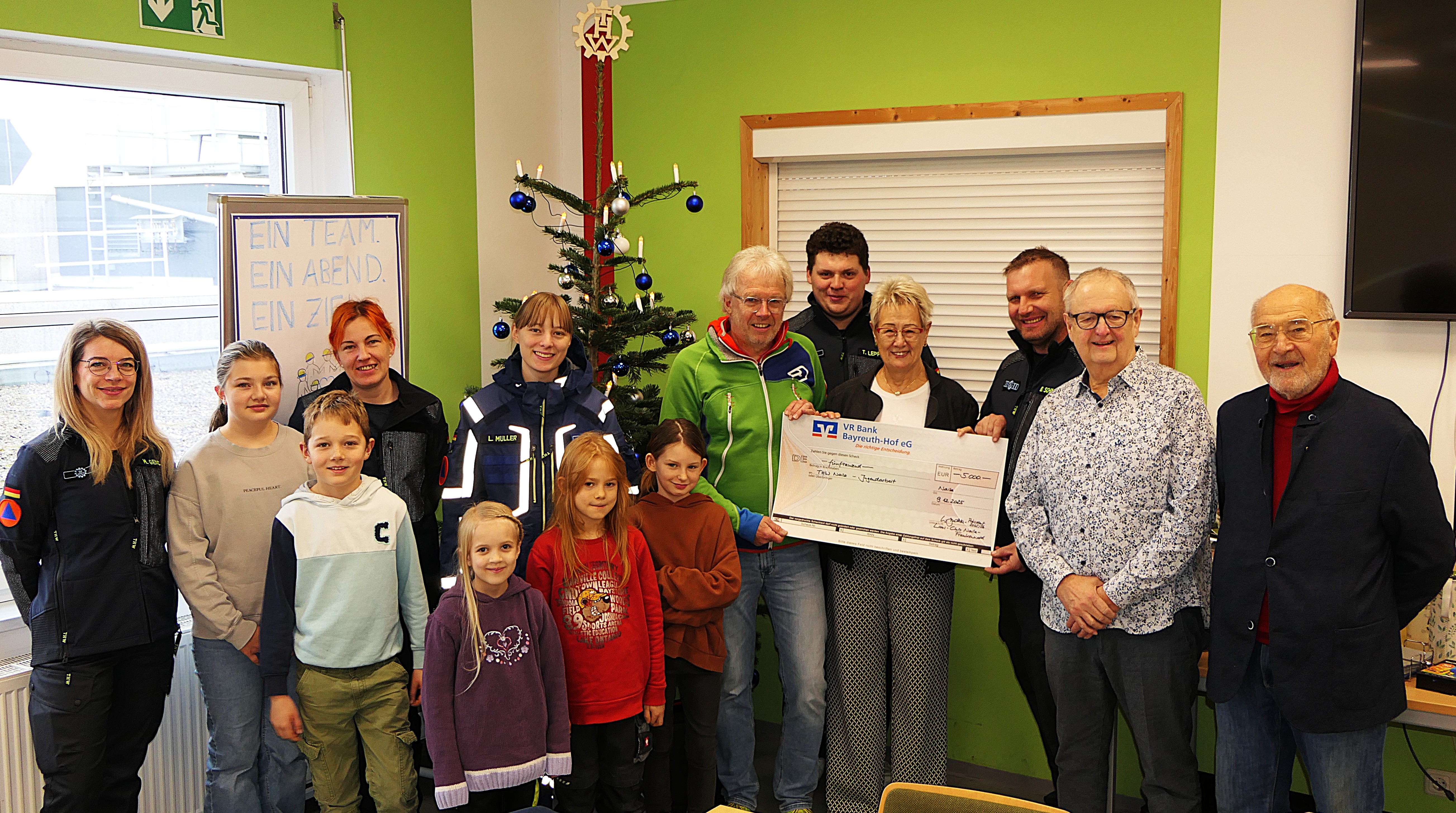 Große Freude beim Technischen Hilfswerk Naila: Im festlichen Rahmen der Weihnachtsfeier der THW-Minigruppe durfte sich die Helfervereinigung des Ortsverbandes über eine außergewöhnlich hohe Spende freuen. Der Lions Club Naila-Frankenwald überreichte einen symbolischen Scheck in Höhe von 5.000 Euro, der gezielt der Nachwuchsarbeit zugutekommt.